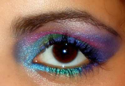 This time I created this Domari Gypsy Belly Dancer inspired look as requested by a blog reader.I used Naked pigments in many different vibrant colors to create this fun look. I used my homemade Mixing Medium to blend the pigments in order to make the color pop even more.